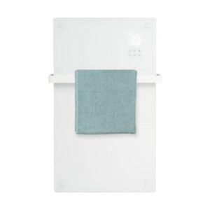 El Eurom Alutherm Sani Verre 1200 Wifi Blanco es un calefactor de baño con frontal de cristal. Además, incluye un toallero. Esto le da un aspecto elegante y moderno, ideal para el baño.