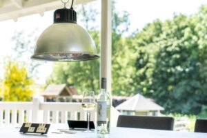 El calentador para carpas de fiesta Eurom 1500 IND es un robusto calentador de patio con diseño industrial. La lámpara de carbono se puede ajustar a 600, 900 y 1500 vatios.