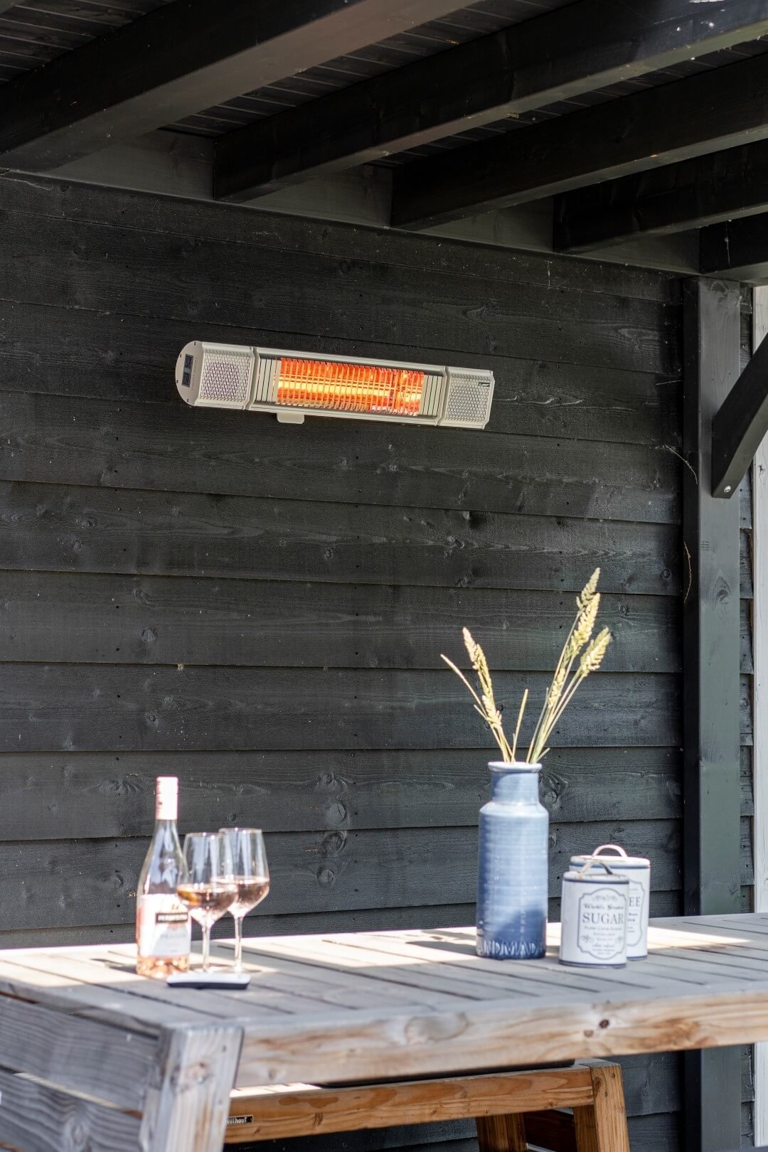 El Eurom Heat and Beat es un calefactor de terraza único de 2000 vatios. Permite reproducir música a través de sus altavoces integrados (2 x 3 pulgadas, 3 vatios). Solo necesita una conexión Bluetooth con el teléfono. Además, el Heat and Beat incorpora luces LED que realzan el ambiente. Las luces y la calefacción se pueden controlar con el mando a distancia o con un smartphone. Con solo descargar la aplicación Eurom Smart, cualquier smartphone puede usarse como control remoto. Lo mejor de la aplicación es que la calefacción se puede ajustar gradualmente. Además, la luz ámbar dorada emite poca luz, pero proporciona una calidez agradable. El Heat and Beat creará el ambiente perfecto en la terraza.