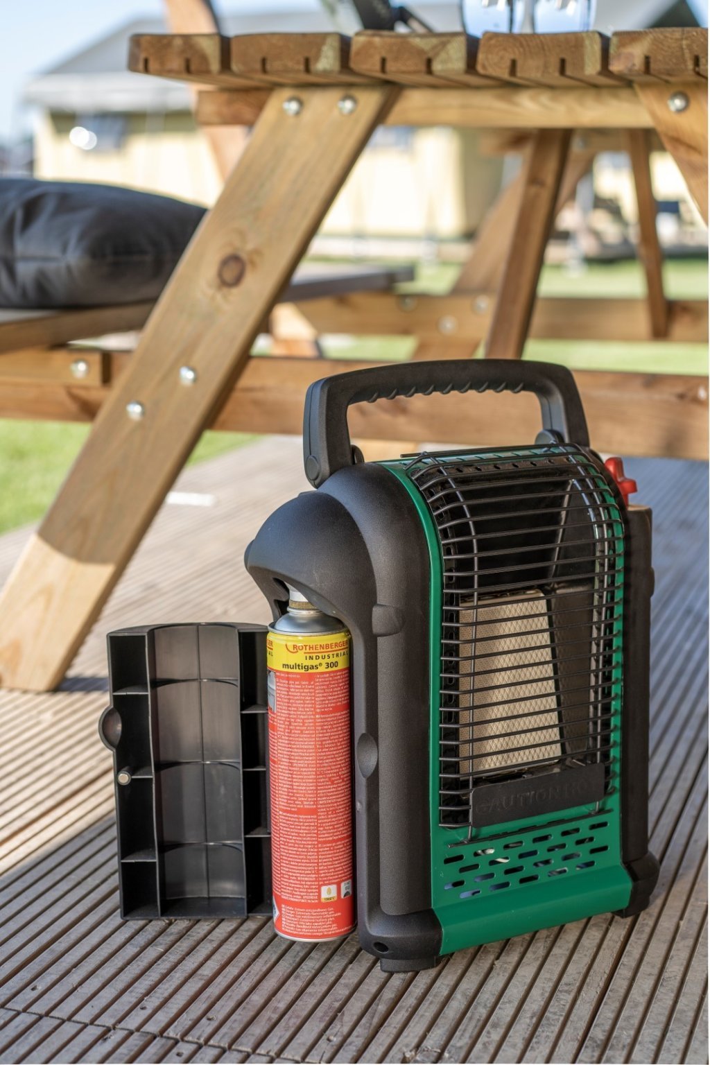 El Eurom Outsider es un calefactor radiante para exteriores. Su estructura ligera y su asa grande facilitan su transporte. Esto lo convierte en el calefactor de gas ideal para acampar o pescar.