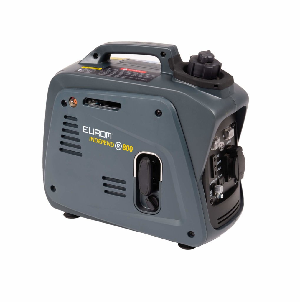 El Eurom Independ 800 es el generador más pequeño de la línea Independent, con una potencia de 800 VA. Funciona con gasolina y tiene una autonomía de 4,1 horas con un depósito de 2,1 litros.