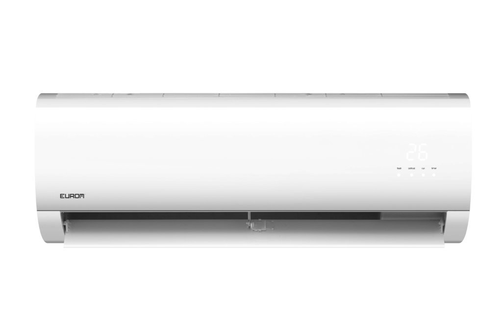 Este aire acondicionado split incorpora la función de oscilación automática para una distribución uniforme del aire. Puede controlarse cómodamente mediante control remoto o a través de la aplicación Eurom Smart, permitiendo un manejo sencillo e intuitivo desde cualquier lugar.