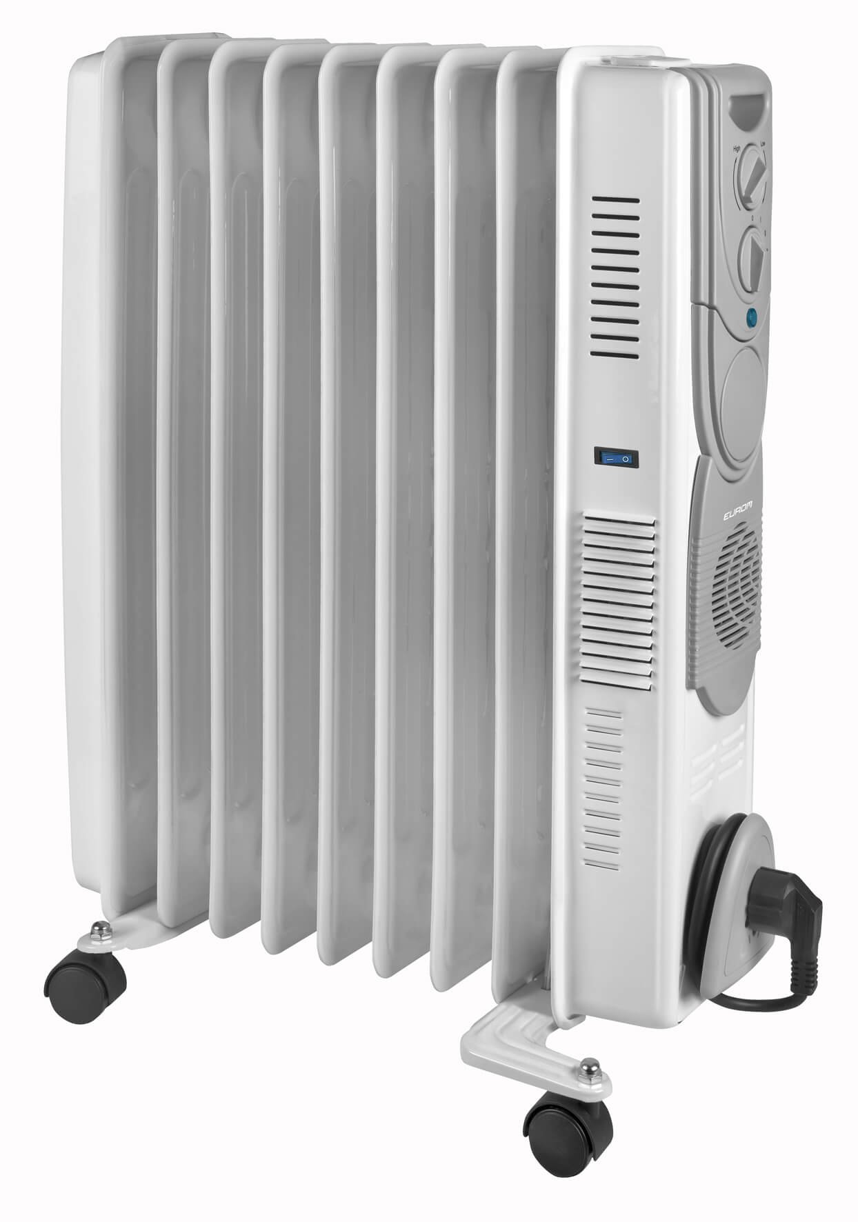 El radiador de aceite Eurom RAD 2000T es el radiador más lujoso de su clase. La T corresponde a la función Turbo de 400 vatios adicionales, que calienta la habitación más rápido. Este radiador también cuenta con termostato y 3 niveles de potencia: 750, 1250 y 2000 vatios.