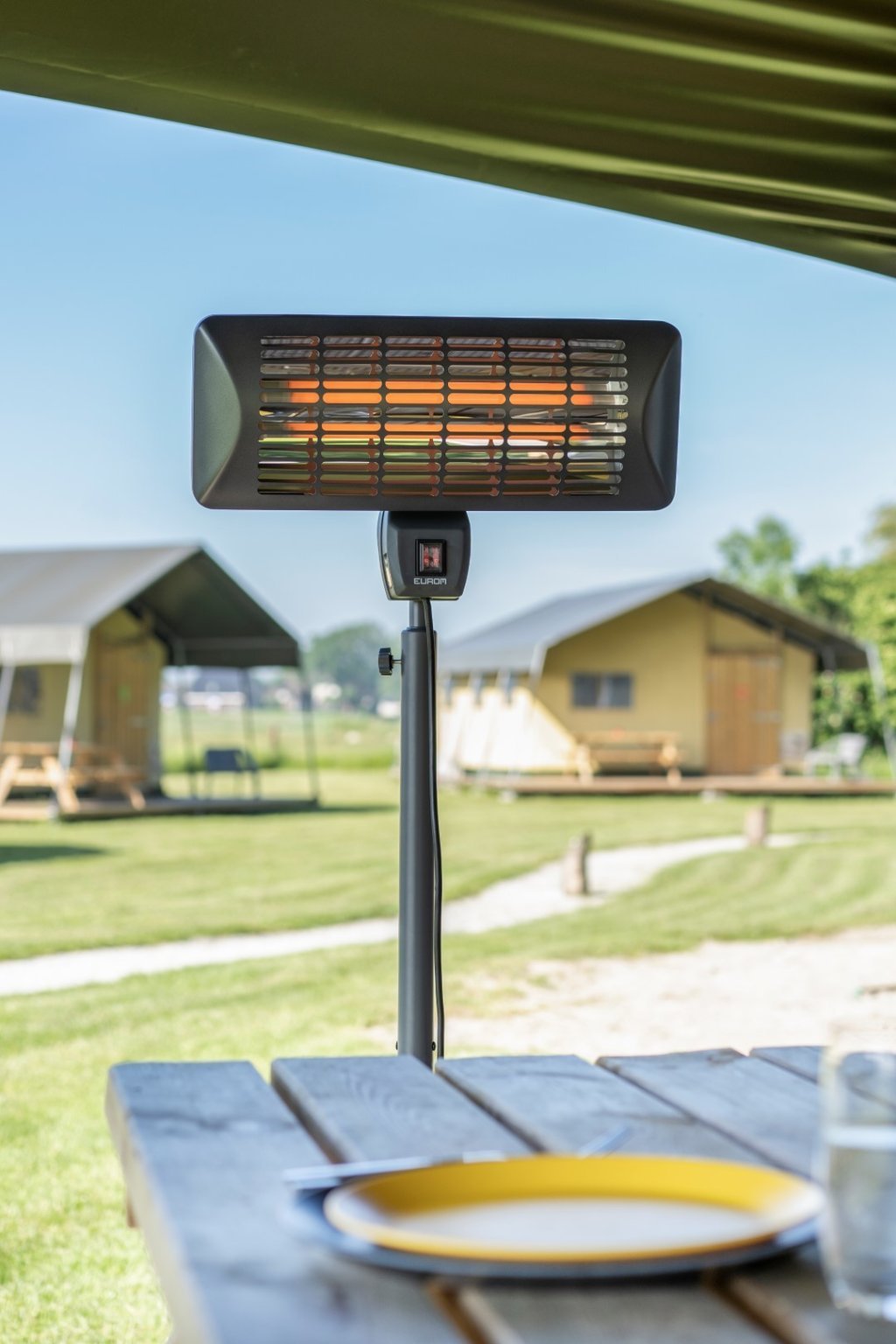El Eurom Q-time 2000S es un calentador de patio eléctrico de 2000 vatios.