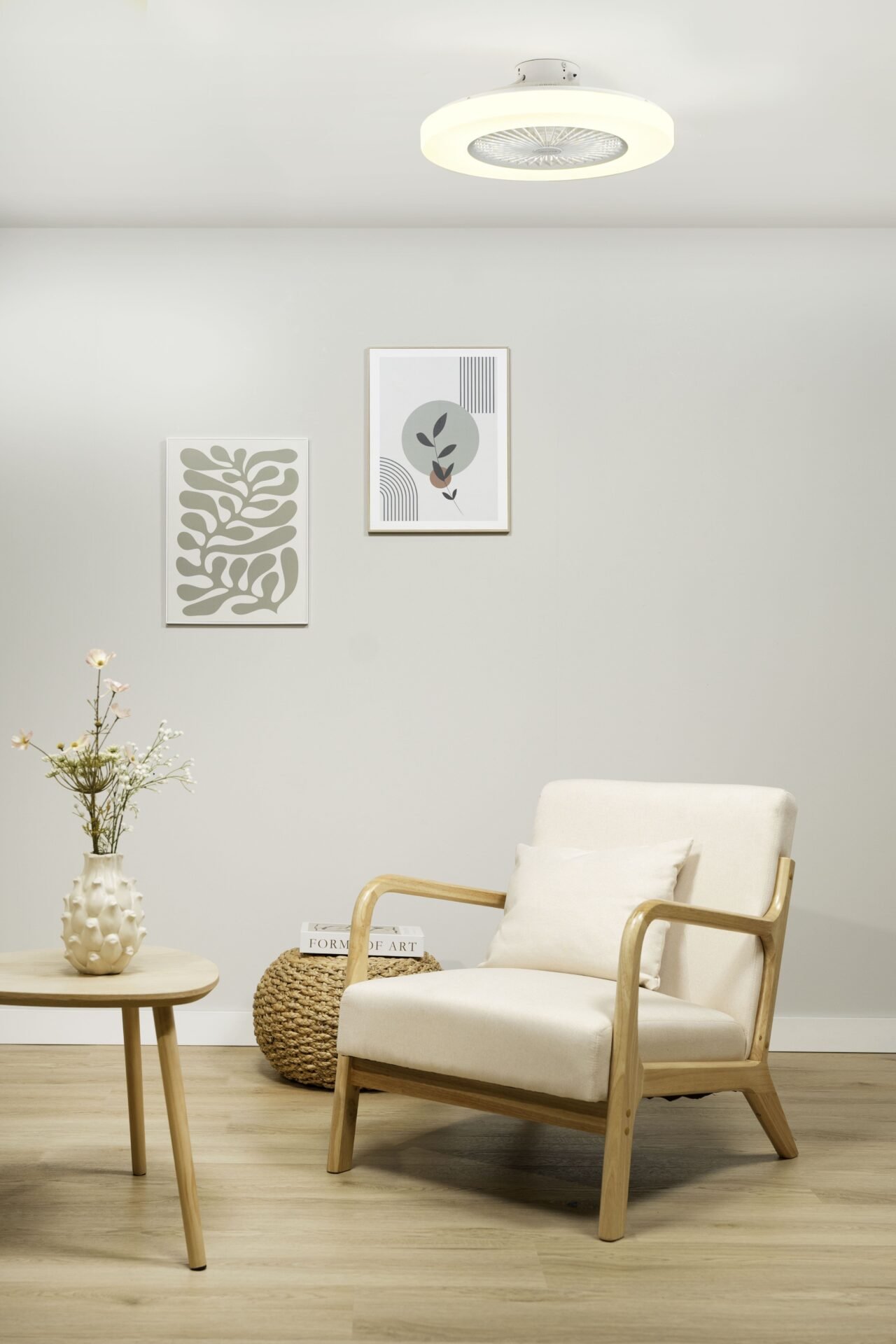 El ventilador de techo Eurom LRC White es un ventilador compacto con lámpara integrada, diseñado para proporcionar frescura y luz al mismo tiempo.